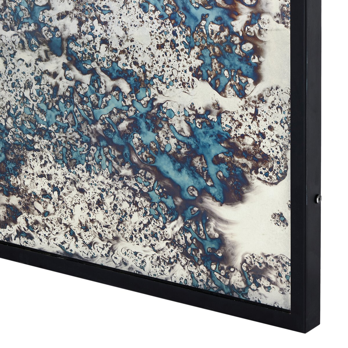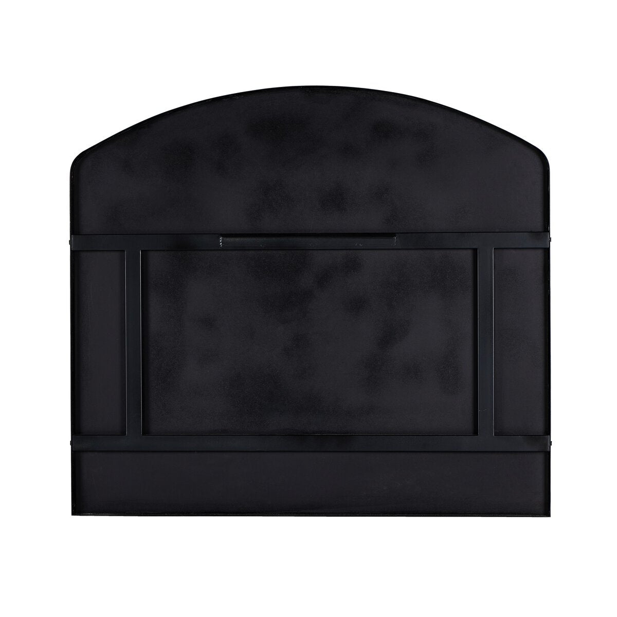Black-finished iron forms the clean, arched frame of this acid-washed mantel mirror with hand-painted blue hues.