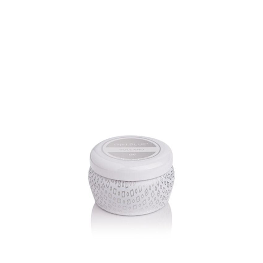 Brighten up any space with the clean and elegant look of our White tin jar. This memorable and iconic Volcano fragrance will entice you with its tropical citrus and yummy sugary notes.