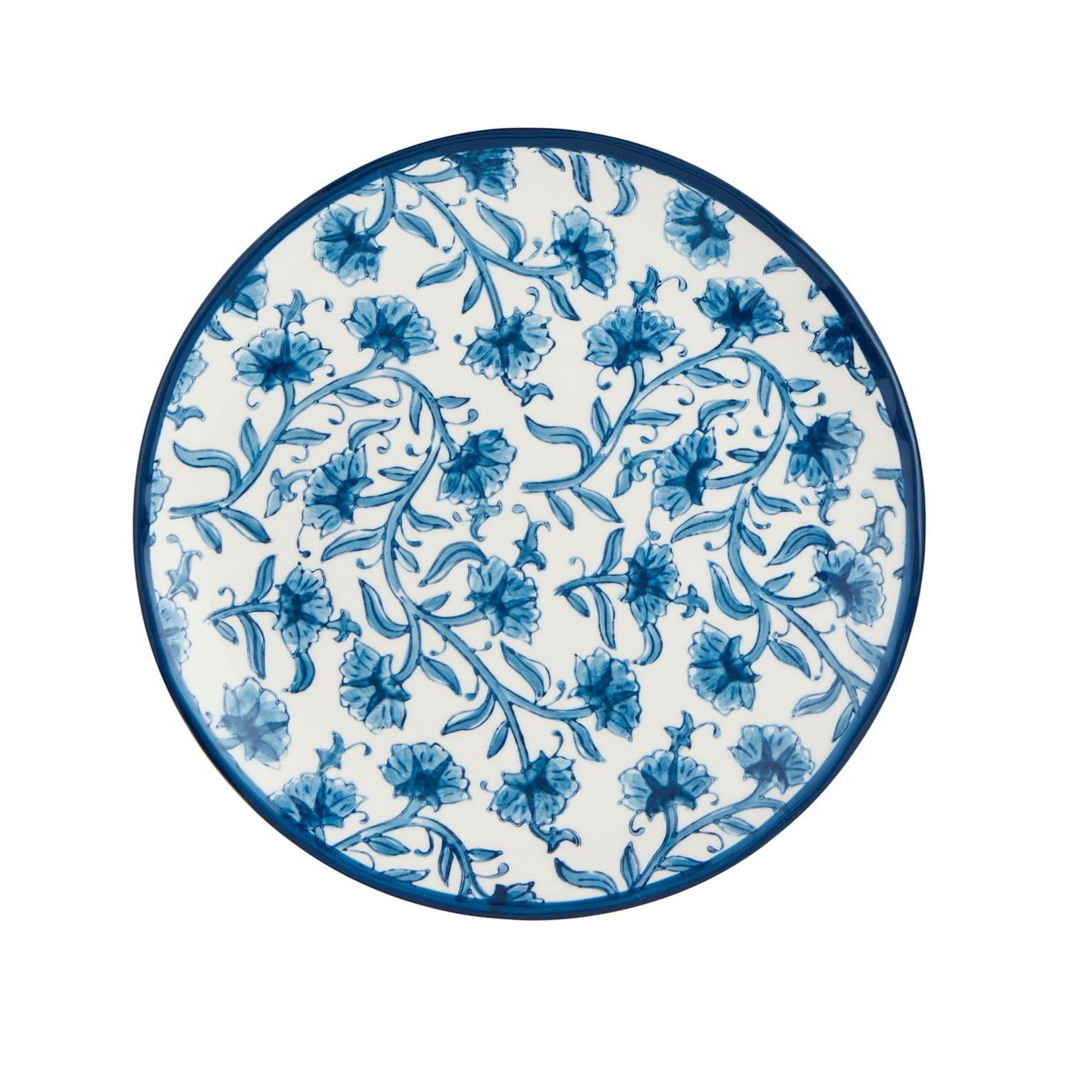 Hand-stamped stoneware salad plate with hand-painted rim detail.
