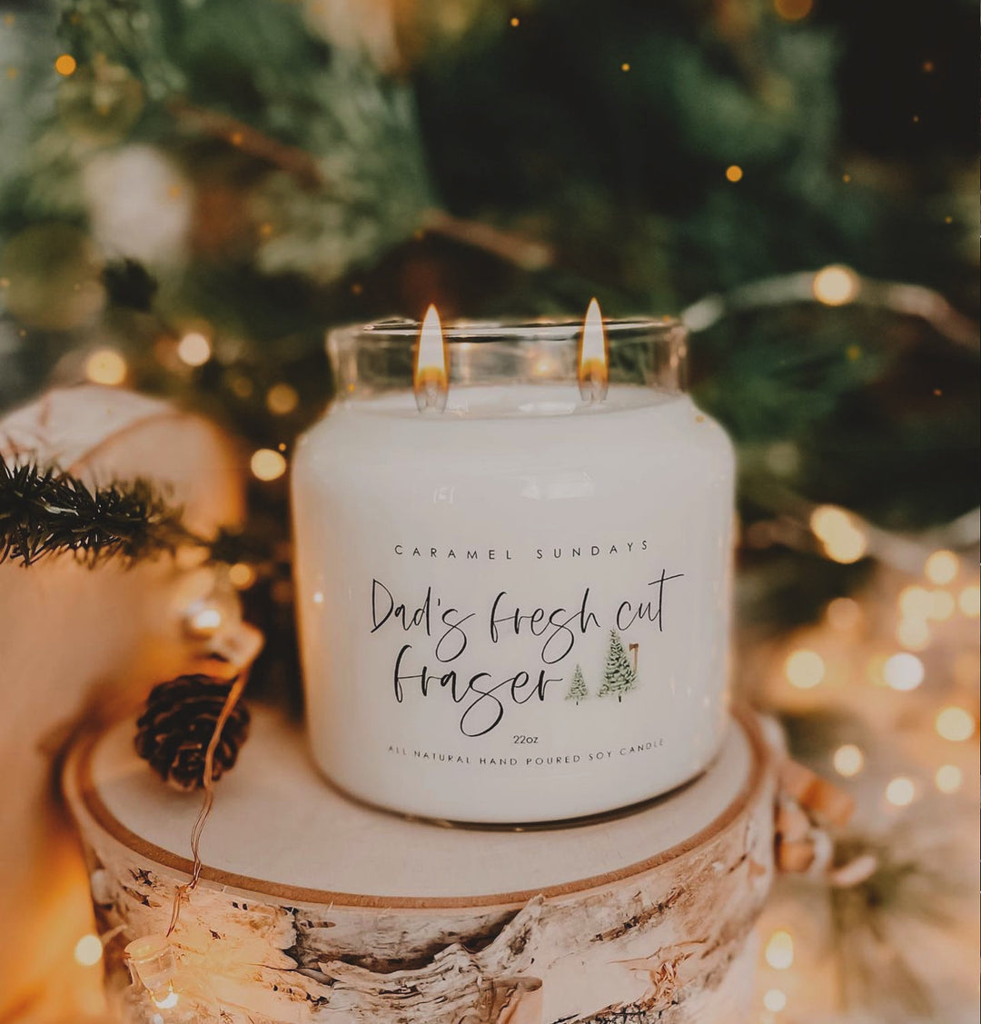 Our Dad’s Fresh Cut Fraser Candle is the scent of a true freshly chopped Christmas tree! It has mild citrus top notes, earthy undercurrents and a woody fir balsam core that SCREAMS Christmas time. It will put you in the perfect festive mood and create the feel for a quiet winter night by the fire!