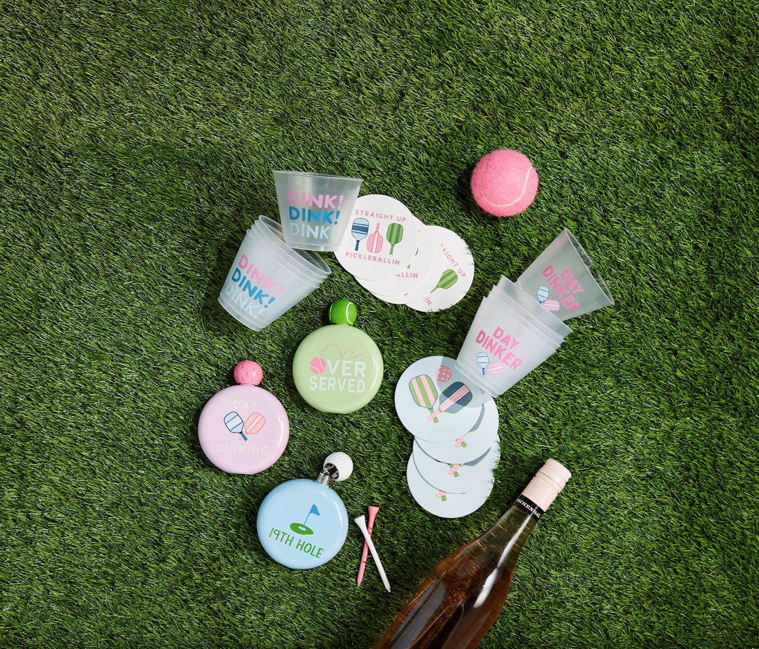2-piece set. Ten frosted party cups come with ten paper coasters
