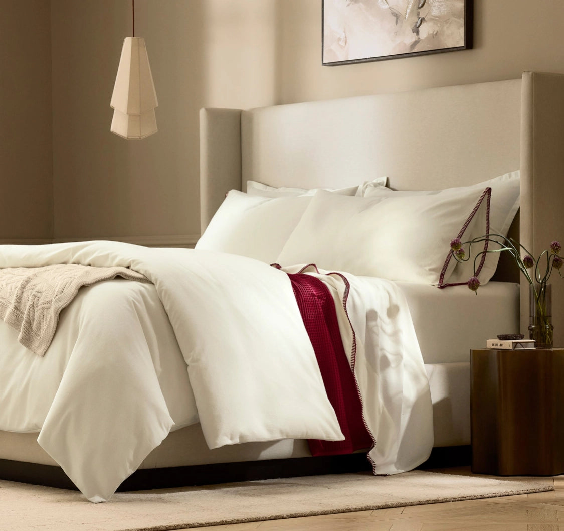 Made with the finest long-staple organic cotton threads in our proprietary interlocking weave that gets loftier with every wash.