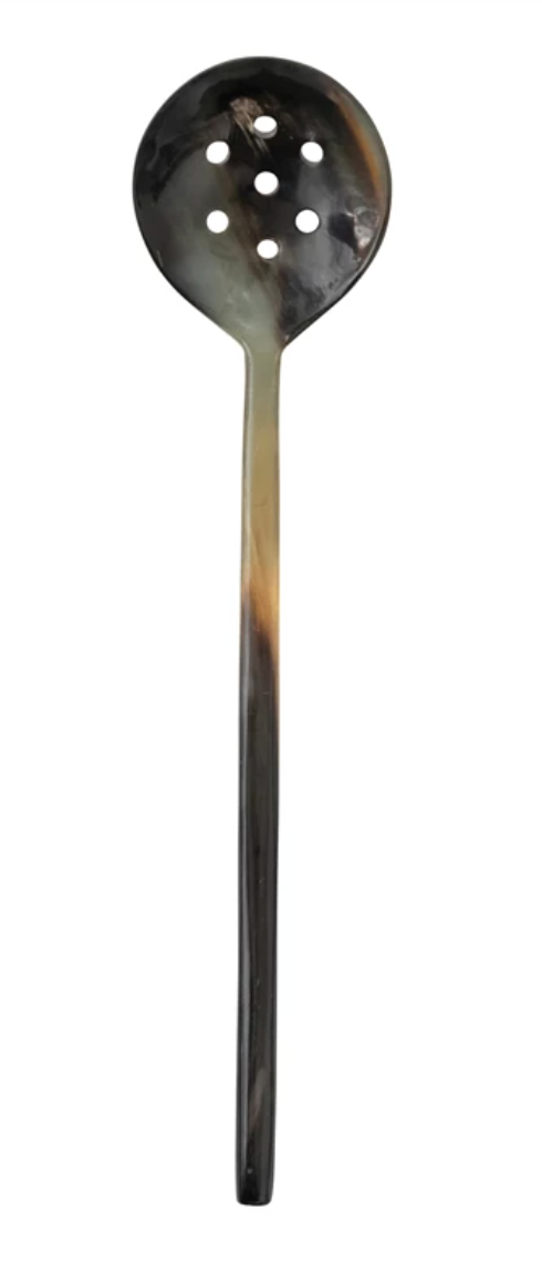Measurements: 7.5" 7-1/2"L Horn Olive Spoon (Each One Will Vary)