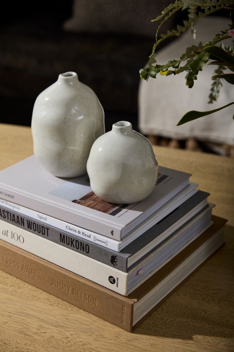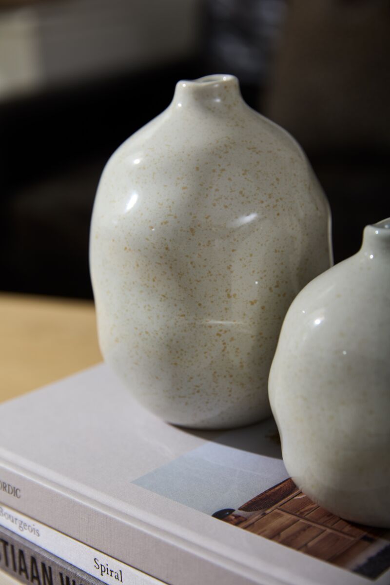 Bring organic, sculptural beauty to styled shelves with the ceramic rounded Lori Budvase. Watertight with a slightly speckled glaze & a small opening for a few stems, these decorative vessels add a sleek & simple handmade look to home décor.