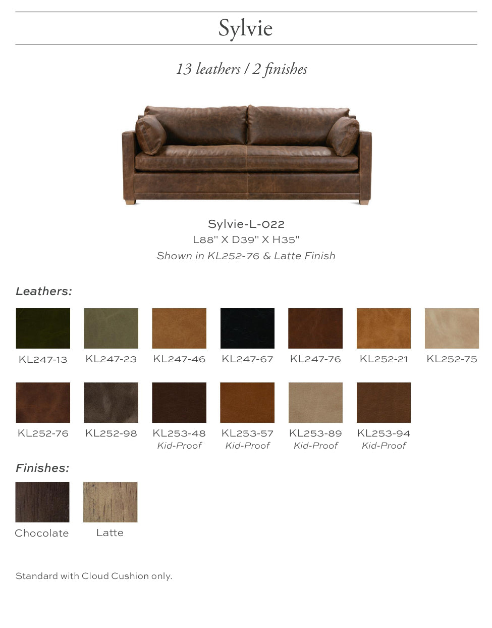 The Sylvie is our BEST selling sofa and now you can get the sectional in leather! This specific sofa comes in 13 different leather options and 4 kid proof leathers. Email us at customerservice@saltboxlane.com to choose the right leather for you.