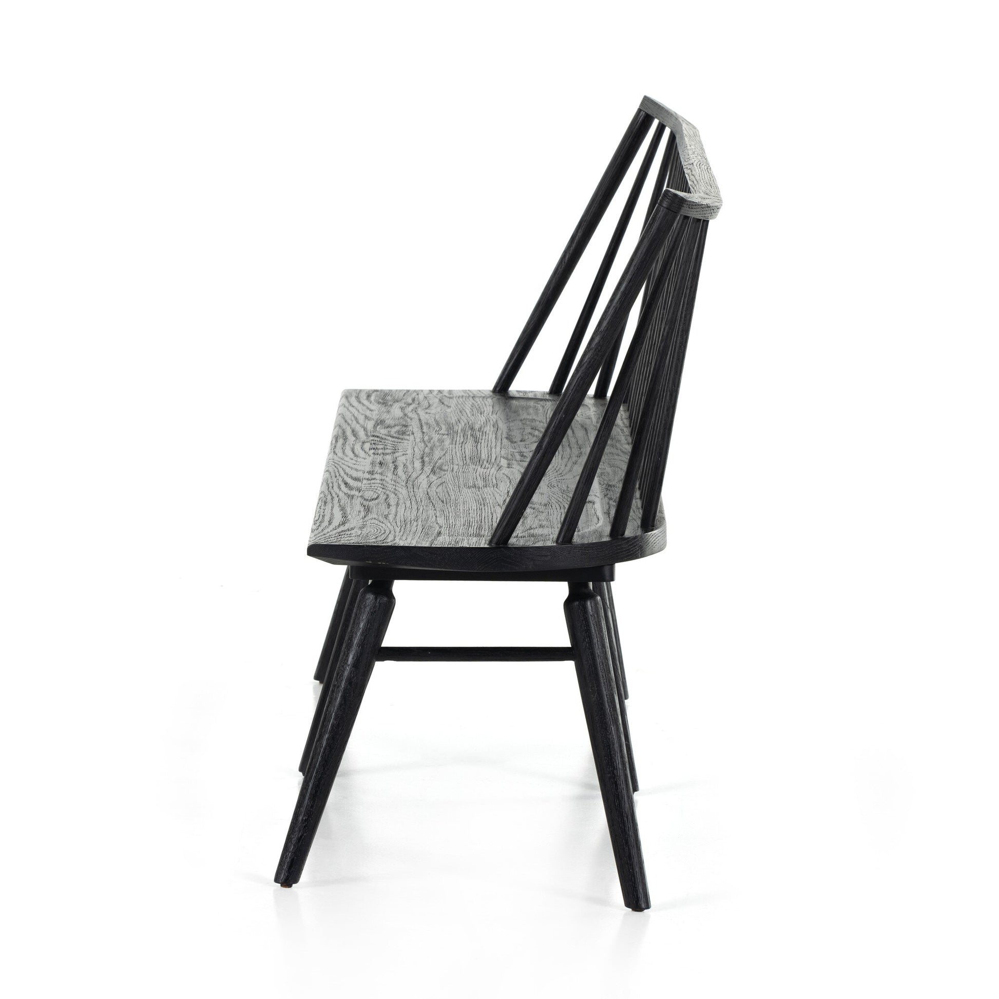 For a clean, modern take on the traditional Windsor, this tall beauty is wire-brushed to play up natural cathedral graining, then finished in a deep, classic black.
