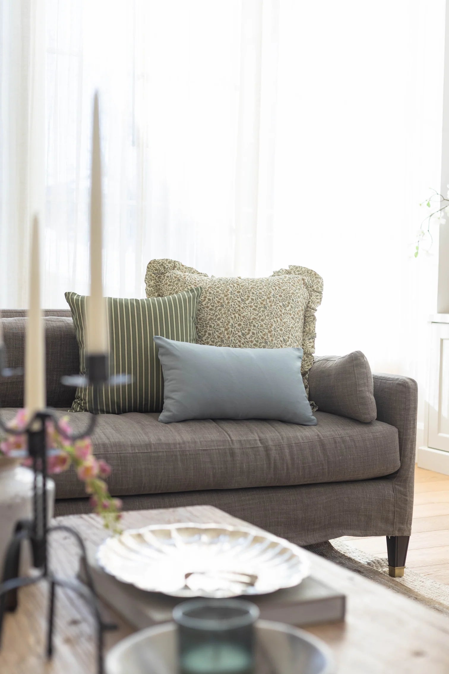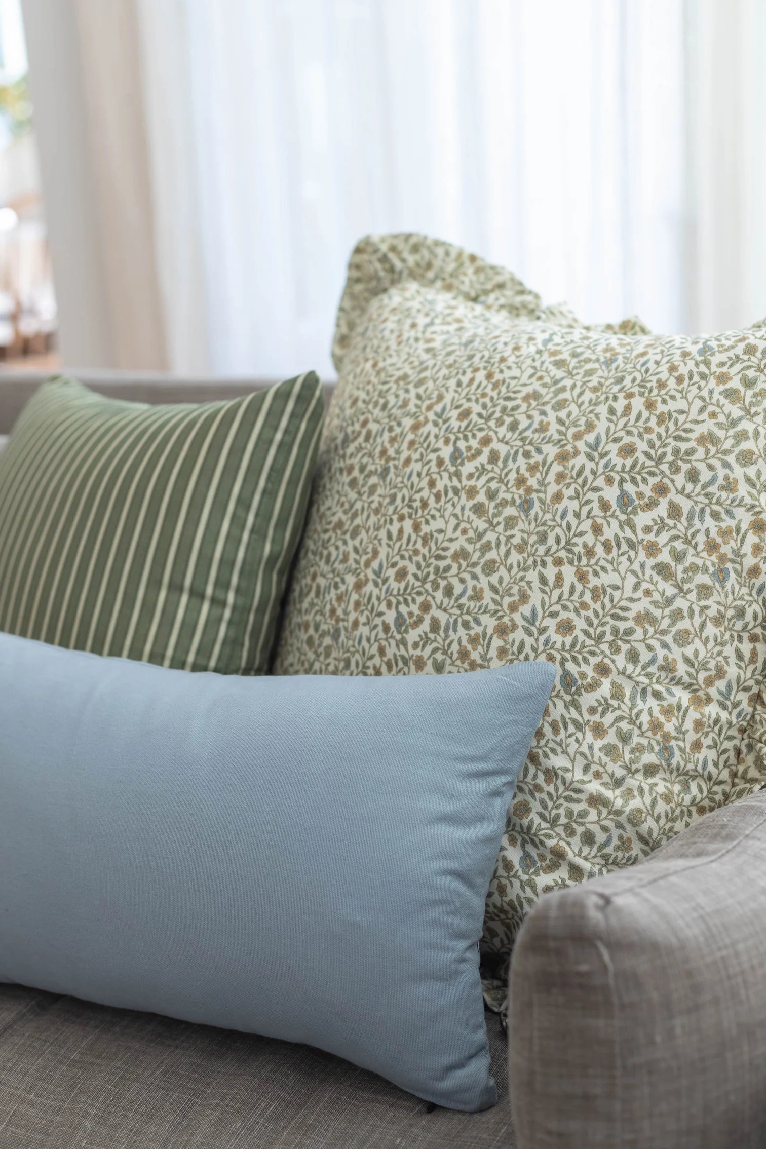 TheMeadow Ruffle Pillowpairs a delicate, vintage-inspired floral with a soft ruffled edge, bringing an airy, cottage-garden feel to your sofa, bed, or reading nook. Its warm cream base and soft touches of sage, blue, and golden floral tones feel fresh and inviting—perfect for spring layering. Style it with light stripes, ginghams, and crisp neutrals for a space that feels collected, bright, and effortlessly lived in.
