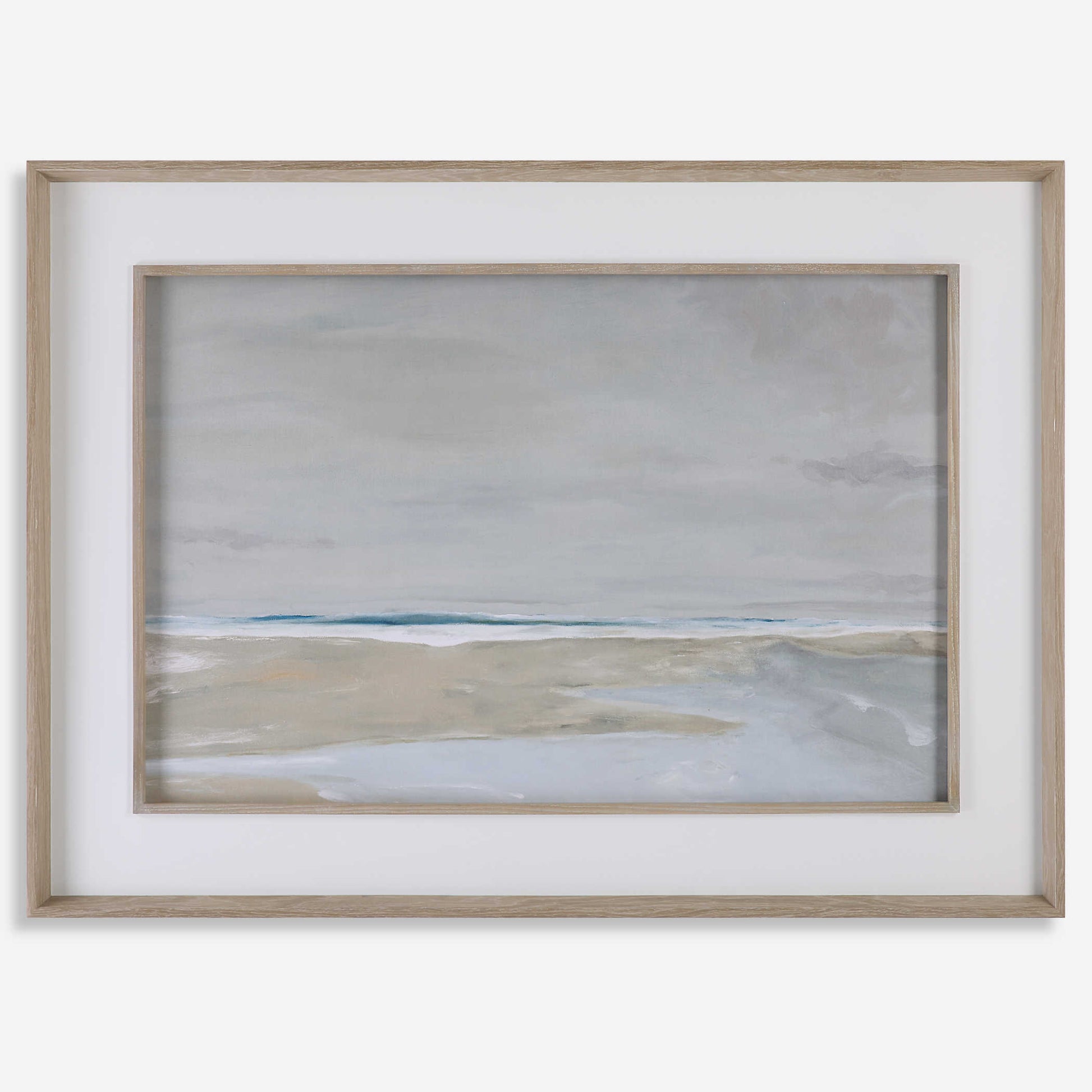 This artwork paints a picturesque view of the Oregon shoreline. Surrounded by a naturally finished pine wood frame and fillet with a satin white mat. Printed on paper with special matte finish. Artwork by Rob Delamater.