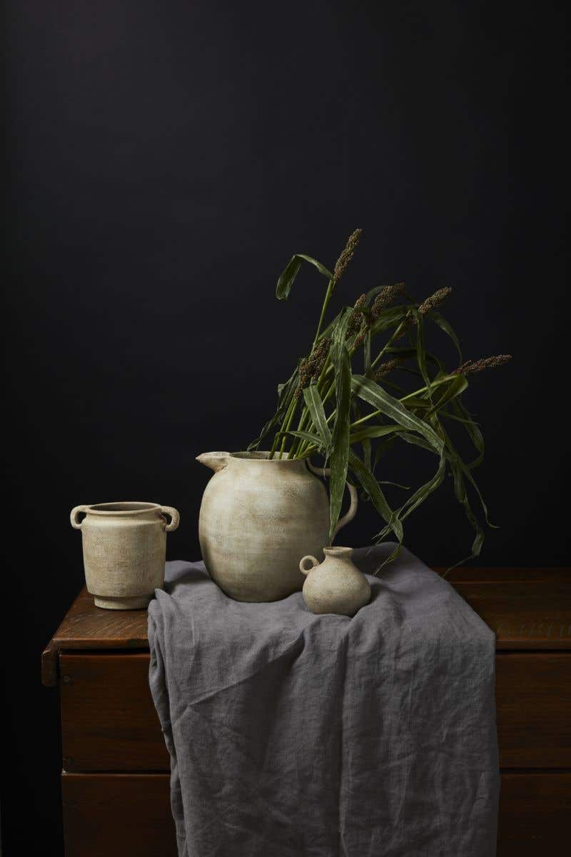 The Revival Jug features a beautifully hand shaped handle and spout, with a rounded body. The natural texture of terracotta enhances the old world beauty of this piece. 9" x 7.5" x 8"
