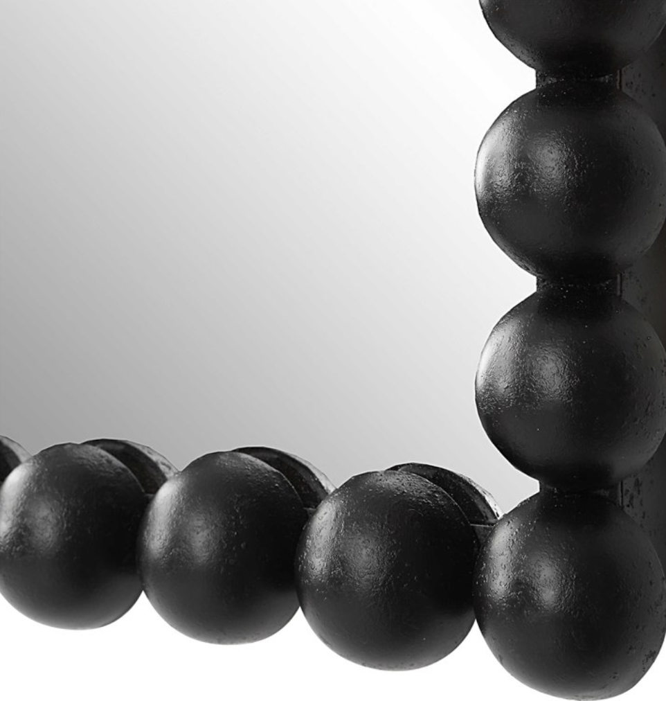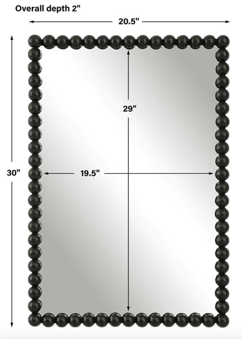 This iron frame features a beaded profile finished in a stylish satin black. May be hung horizontal or vertical.