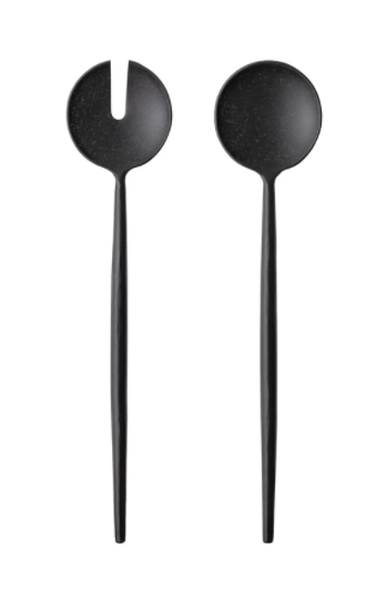 These stainless steel salad servers are the perfect piece for a dinner or party. They have a beautiful matte black color and come in a beautiful drawstring bag for storage. These servers are perfect if you are looking for a way to add style at the next party you're hosting.