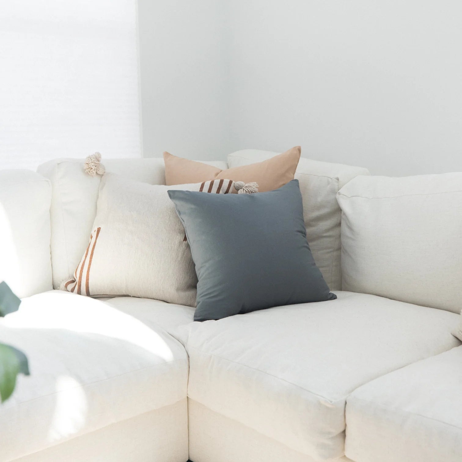 The Storm basics are accurately named.  A Dark gray with a very subtle, cool blue undertone.  These covers really set the mood and take a room to deep thoughtfulness.  Use these intentionally in any space to add some contrast and depth.