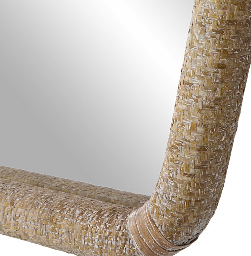 Utilizing natural materials that blend with virtually any style, this mirror features a wooden frame with a wrapped woven rattan design. May be hung horizontal or vertical.